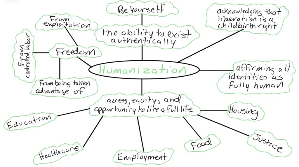 What does humanization mean in the context of our everyday lives? What does it mean to be humanized within the system of education? Within the healthcare system? What does humanization look like in the context of employment, justice, housing, and food?